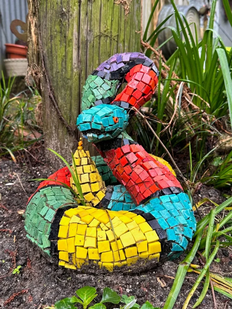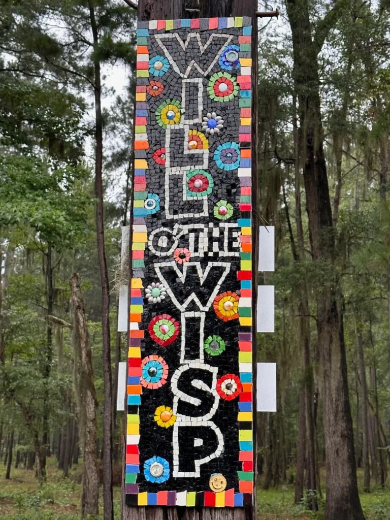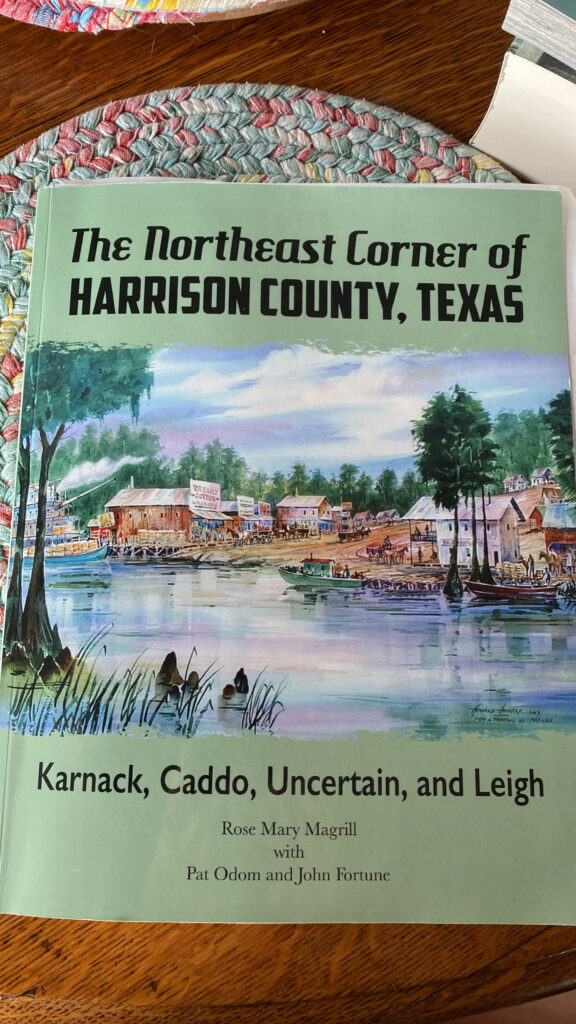 The photo gallery below shows pictures from a couple of different trips Kim took to Caddo Lake. Most of these photos are by John R. Fortune, who is pictured here alongside the text he contributed heavily to, The Northeast Corner of Harrison County, Texas. John will be our contact person in the region. Kim is pictured at Johnson’s Ranch, in Uncertain, Texas, on a sunrise boat ride, and at the railway museum in Marshall, Texas. The mosaic art and the art cars are all around Spatterdock.